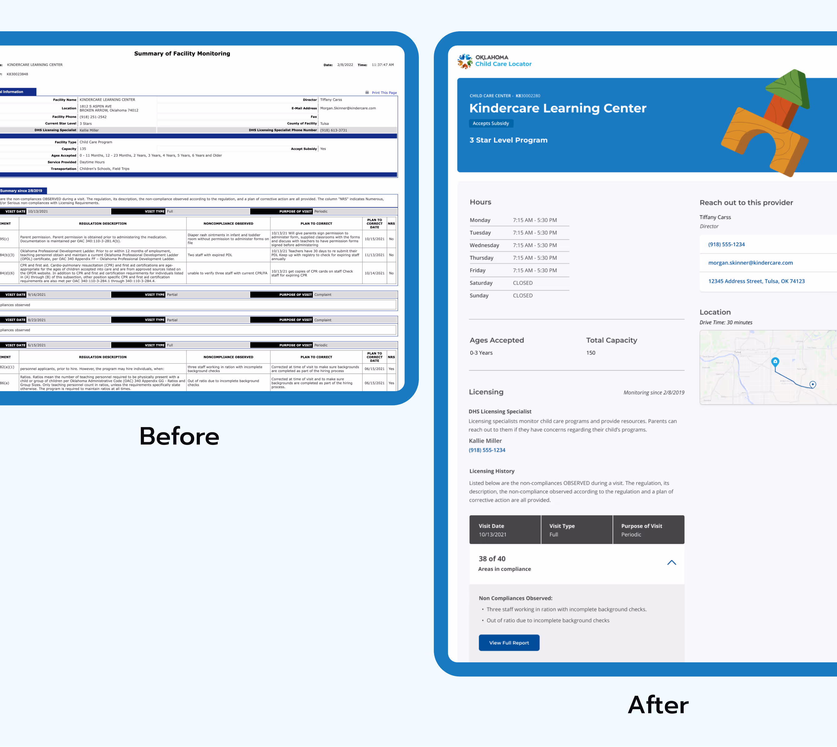 The end results was a much simpler interface and an easier way for parents to quickly search and find childcare services for their children.