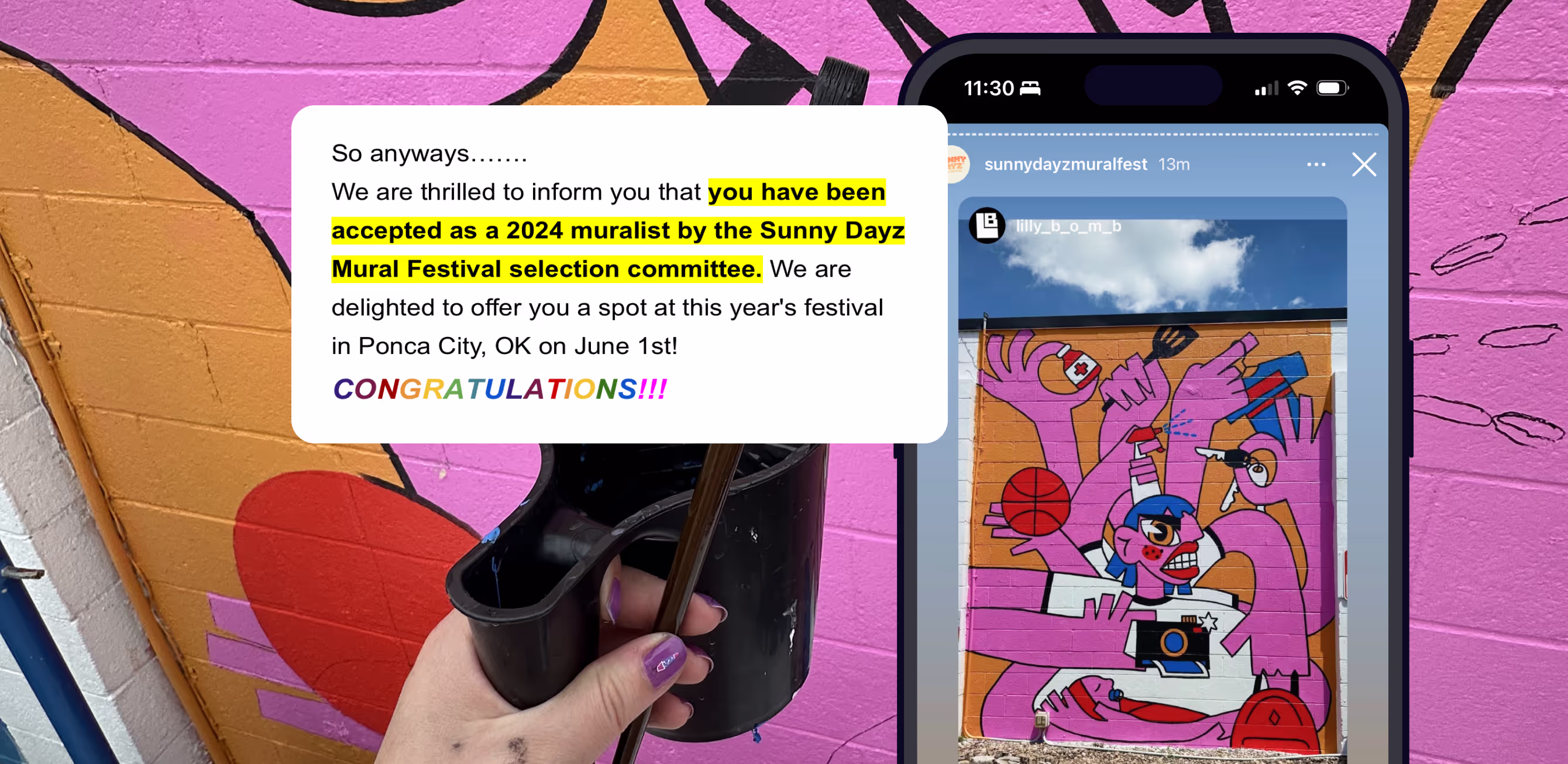 Applying alongside over 500 other artists, I was honored to be accepted as a newcomer mural artist (along with my sister as my day of help). Then started the work of actually coming up with what to paint!