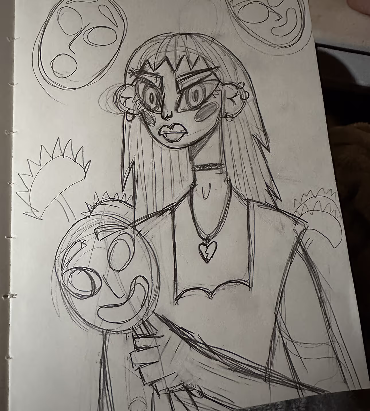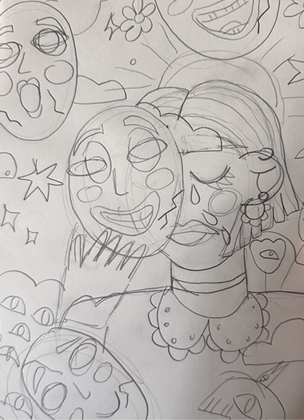 At the beginning of the sketching process, I knew I wanted to feature female characters and create something that conveys emotion. I started out sketching the idea of masking and showing how you never really know what someone is struggling with by just a look. Ultimately, this led me to think of everyone in my life who does this and a lot of them had motherhood in common. Drawing on those experiences, I started sketching a “super mom” who is doing all the things while no one notices the mental load of running the house.
