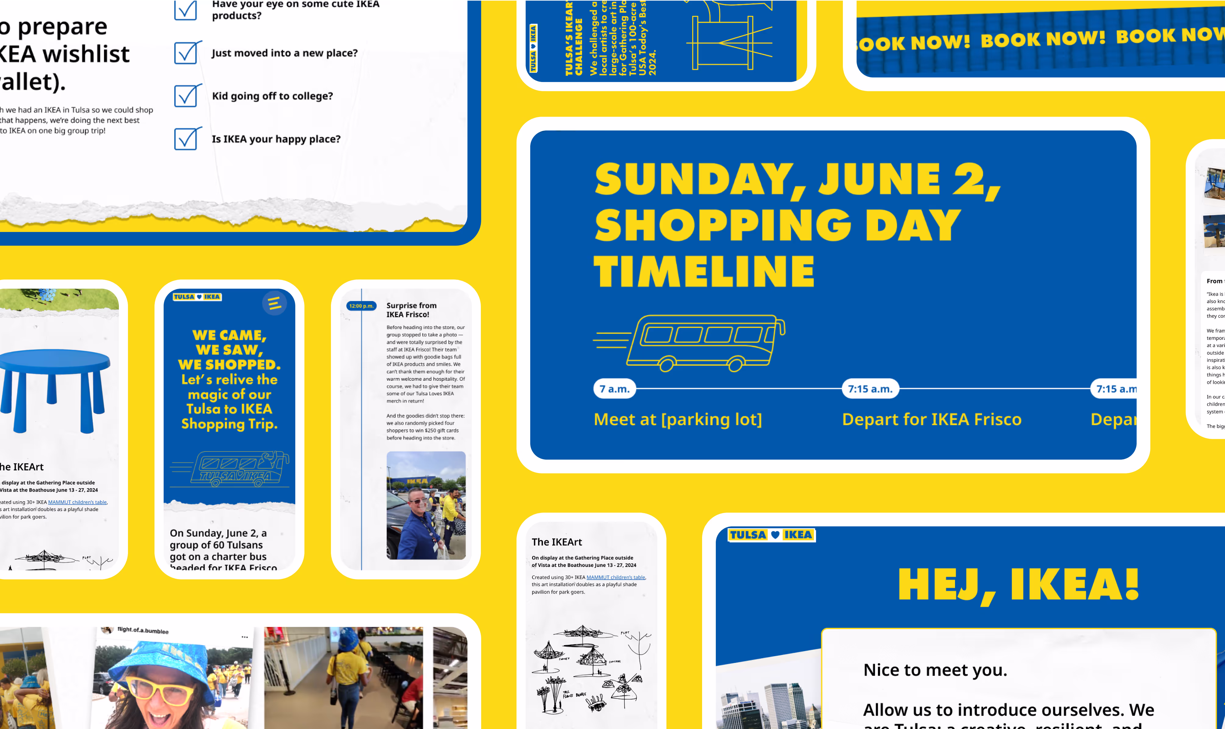 As the lead designer on this project, my task was to create a brand and experience that screamed IKEA as soon as you saw it, but also let little notes of Tulsa shine through. With how energetic this campaign idea was, the assets needed to support and echo that enthusiasm.